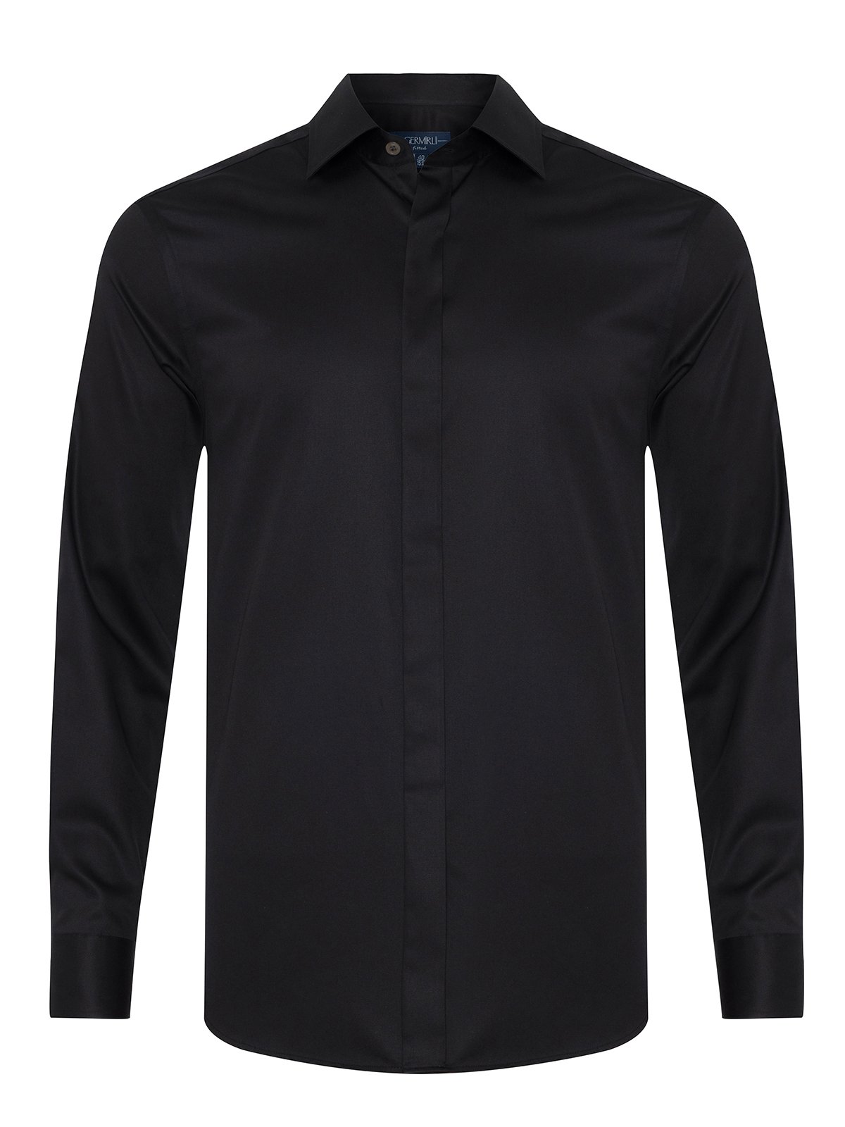 Germirli Siyah Gizli Pat Tailor Fit Klasik Yaka Pamuk Elastan Gömlek