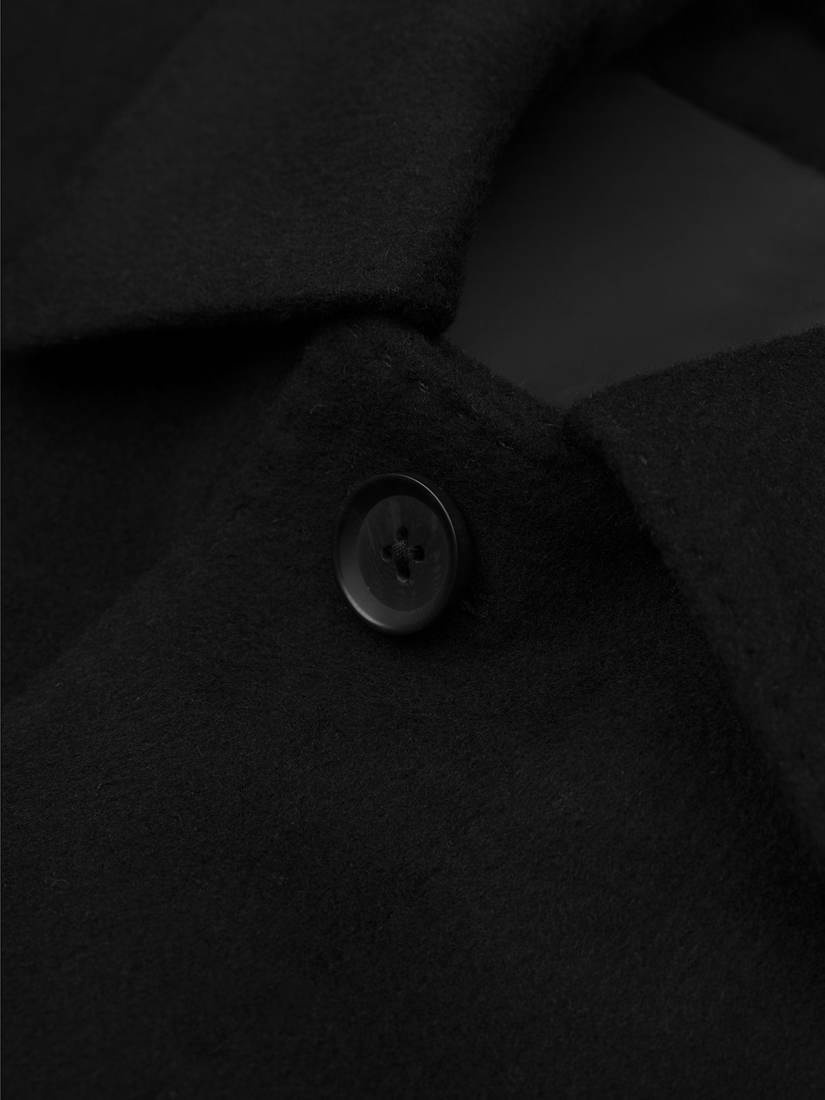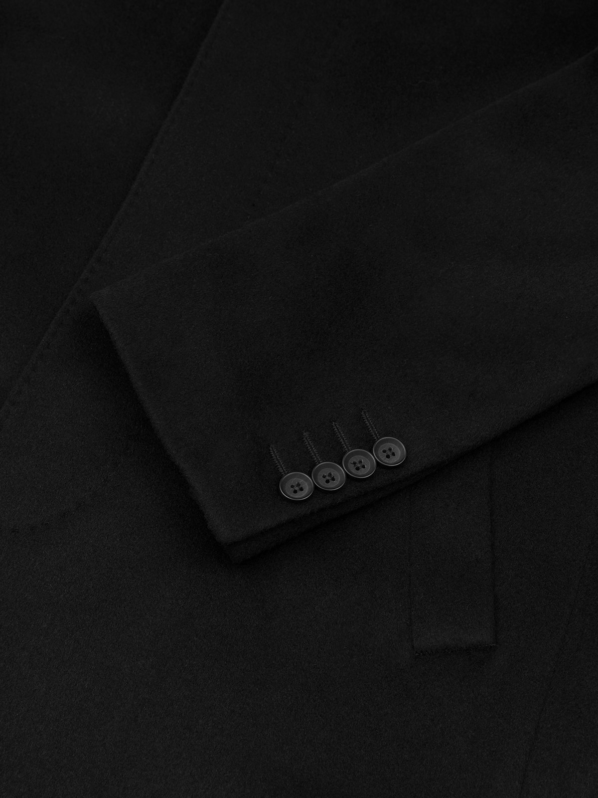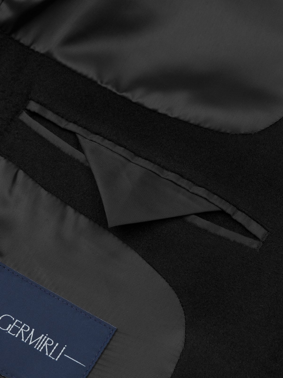 Germirli Siyah Punto Dikişli Yünlü Palto