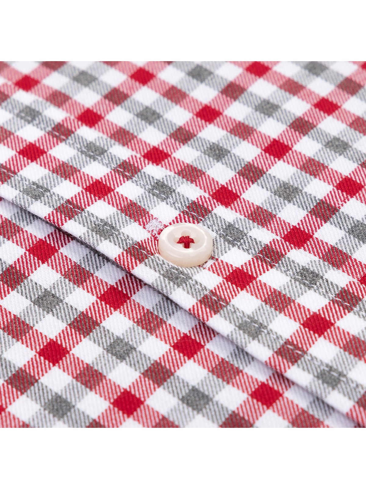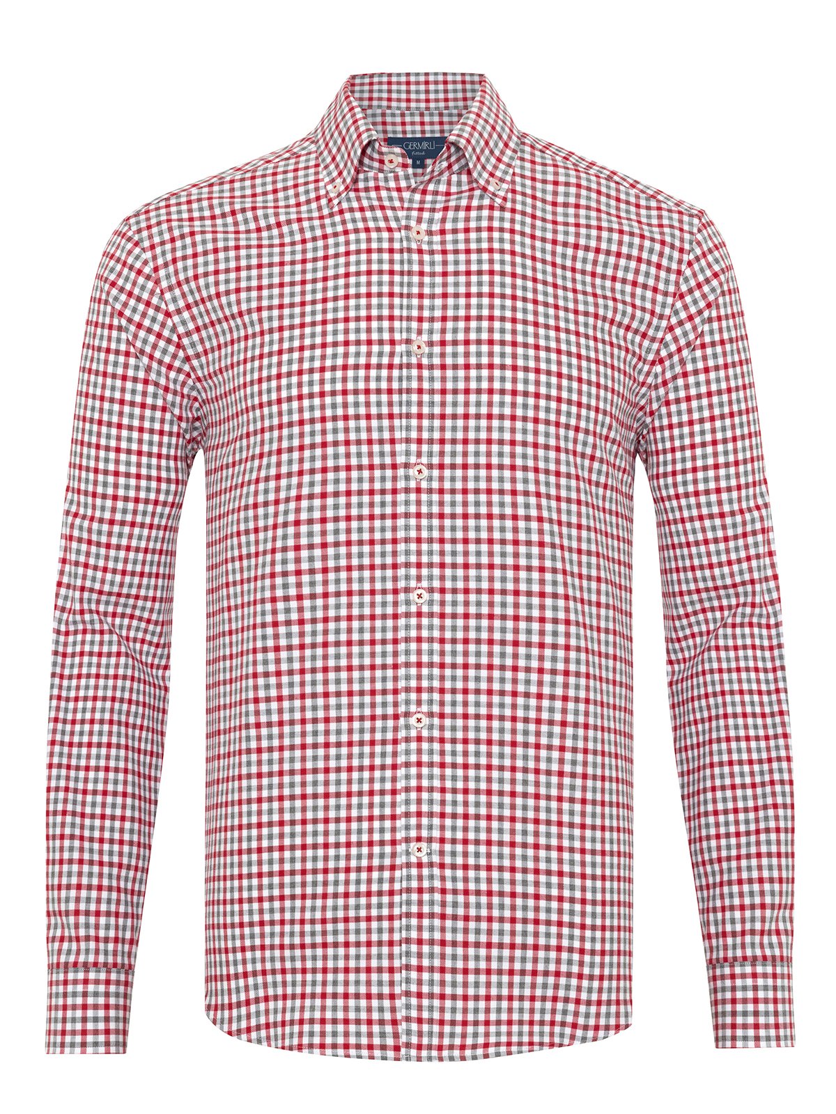 Germirli Testa 80/2 Flanel Kırmızı Melanj Düğmeli Yaka Tailor Fit Pamuk Gömlek