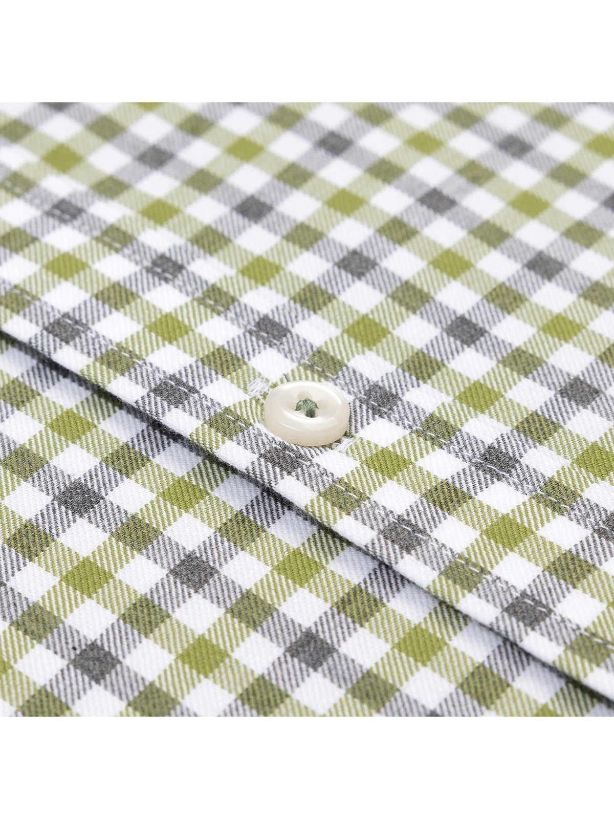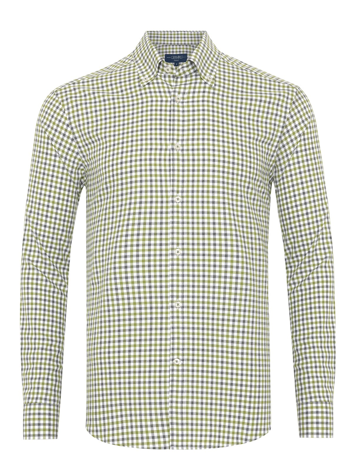 Germirli Testa 80/2 Flanel Yeşil Melanj Düğmeli Yaka Tailor Fit Pamuk Gömlek