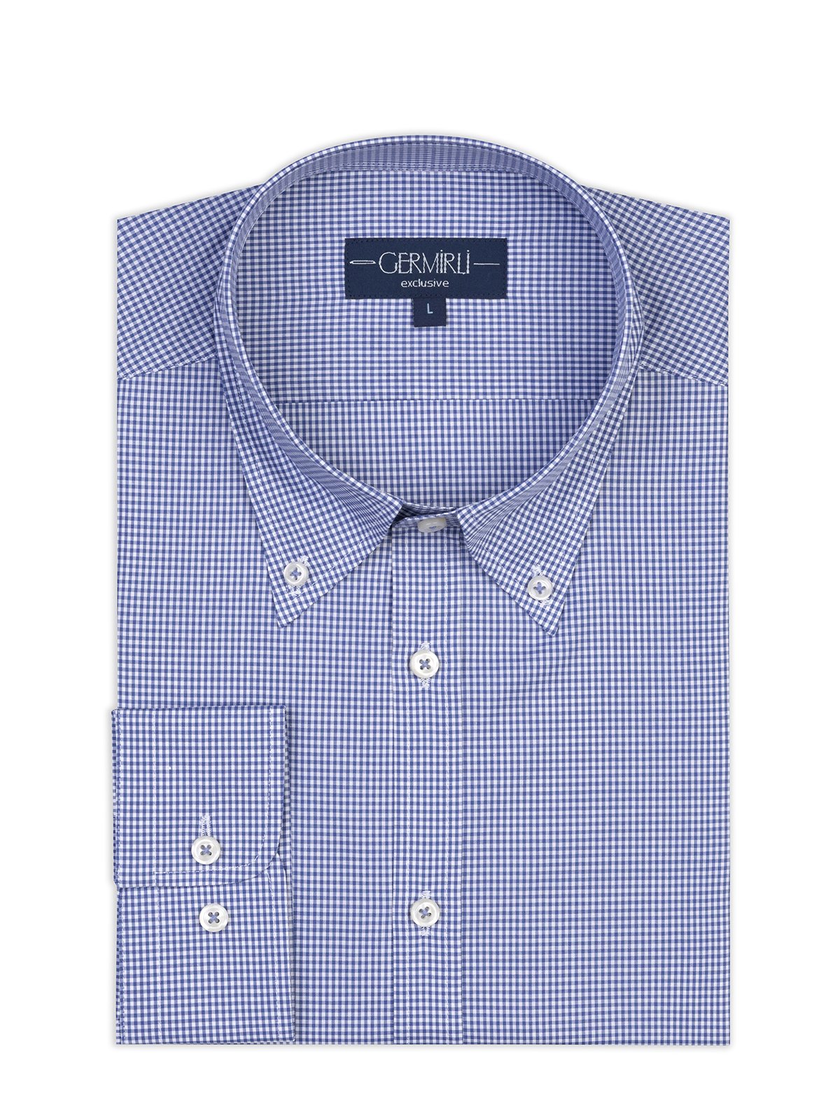 Germirli Testa Exclusive Mavi Mini Pötikare Düğmeli Yaka Tailor Fit Pamuk Gömlek
