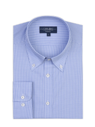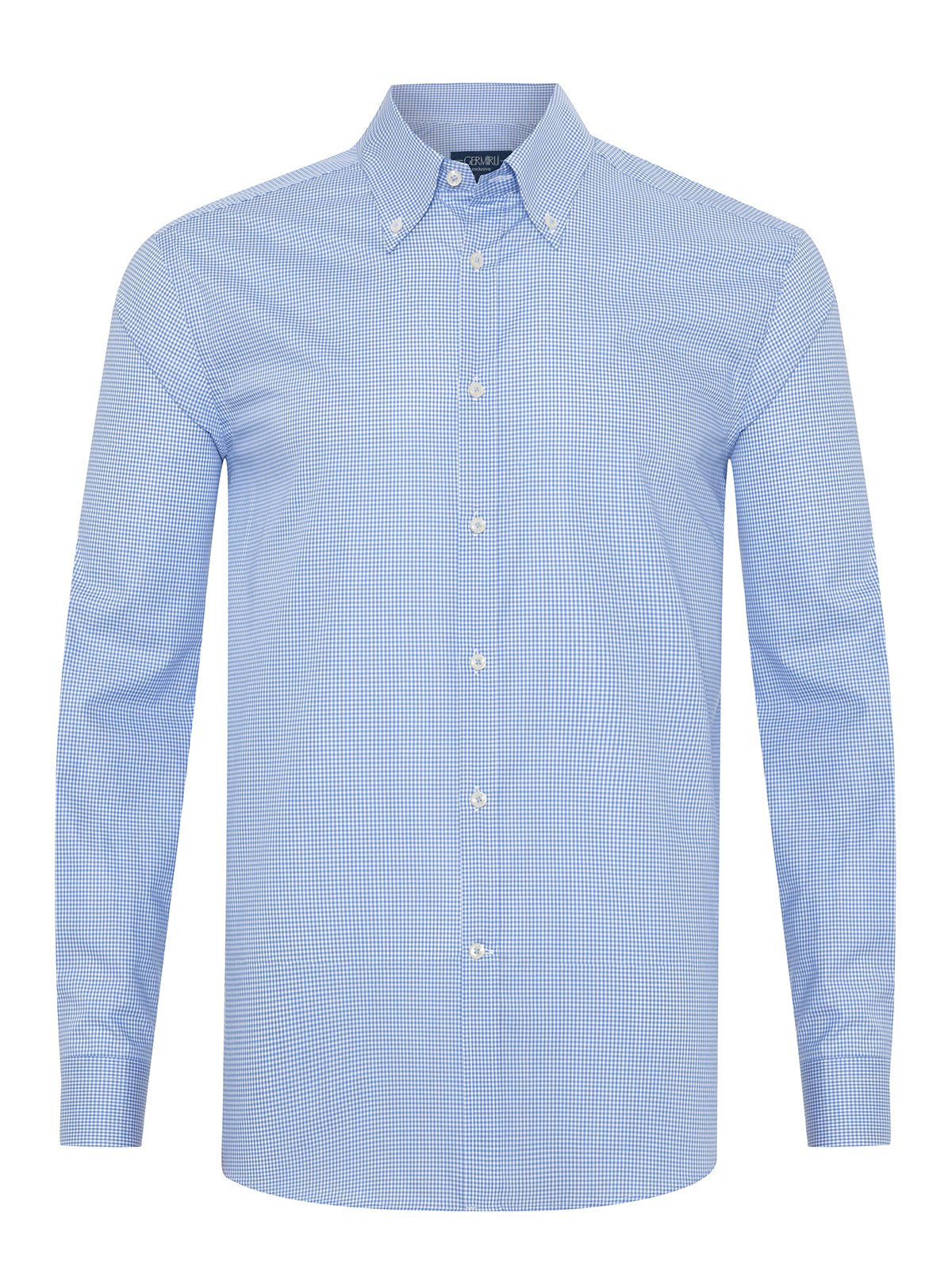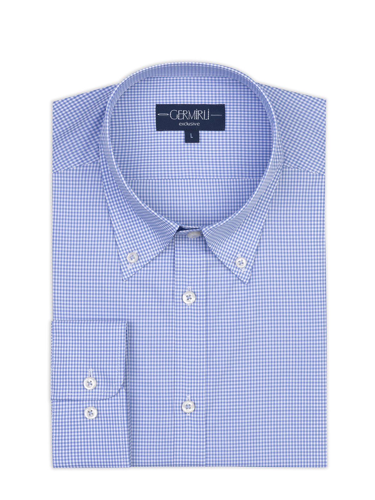 Germirli Testa Exclusive Mavi Mini Pötikare Düğmeli Yaka Tailor Fit Pamuk Gömlek