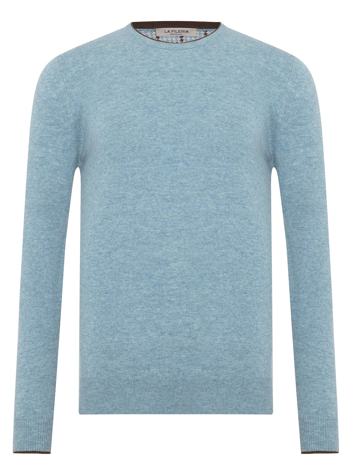 La Fileria Açık Mavi Bisiklet Yaka Peçli Yün Kaşmir Triko
