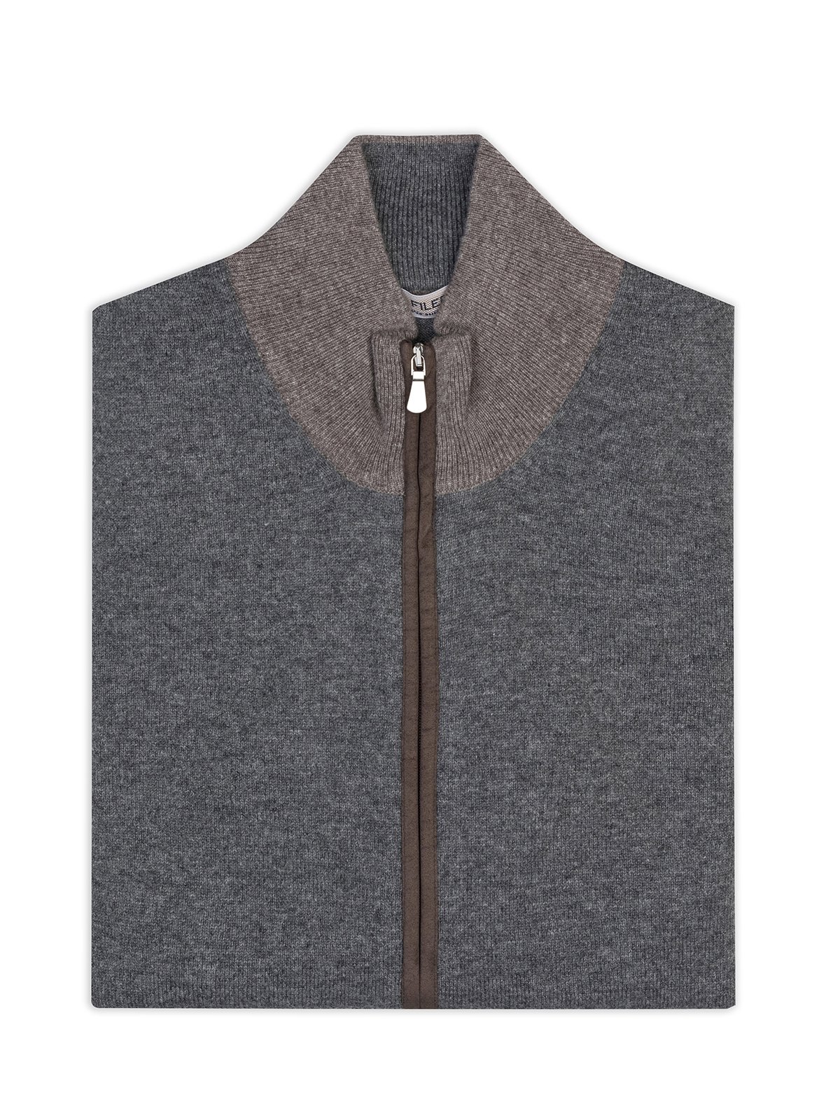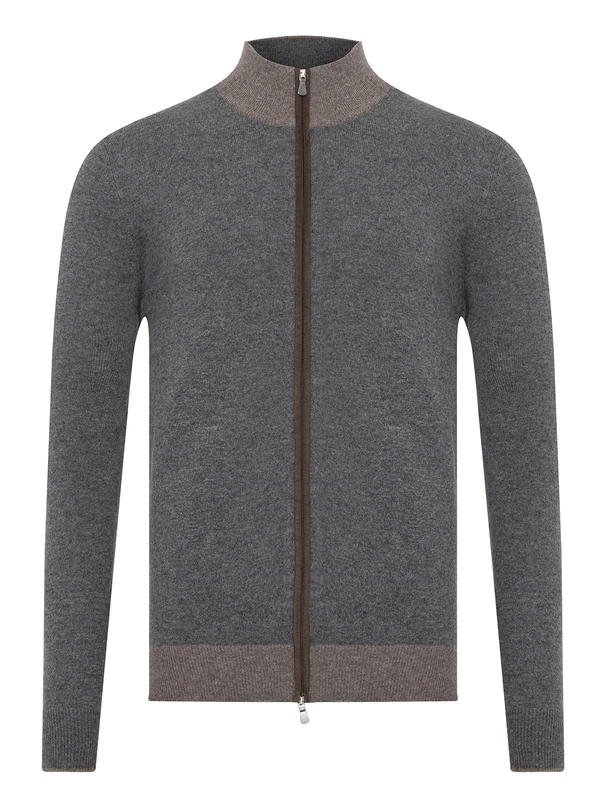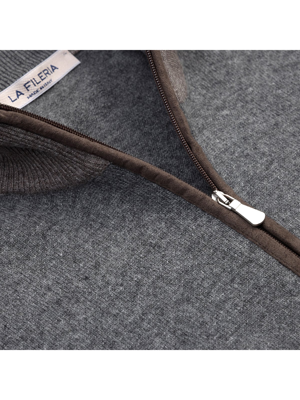 La Fileria Gri Yün Kaşmir Süet Peçli Fermuarlı Hırka Triko