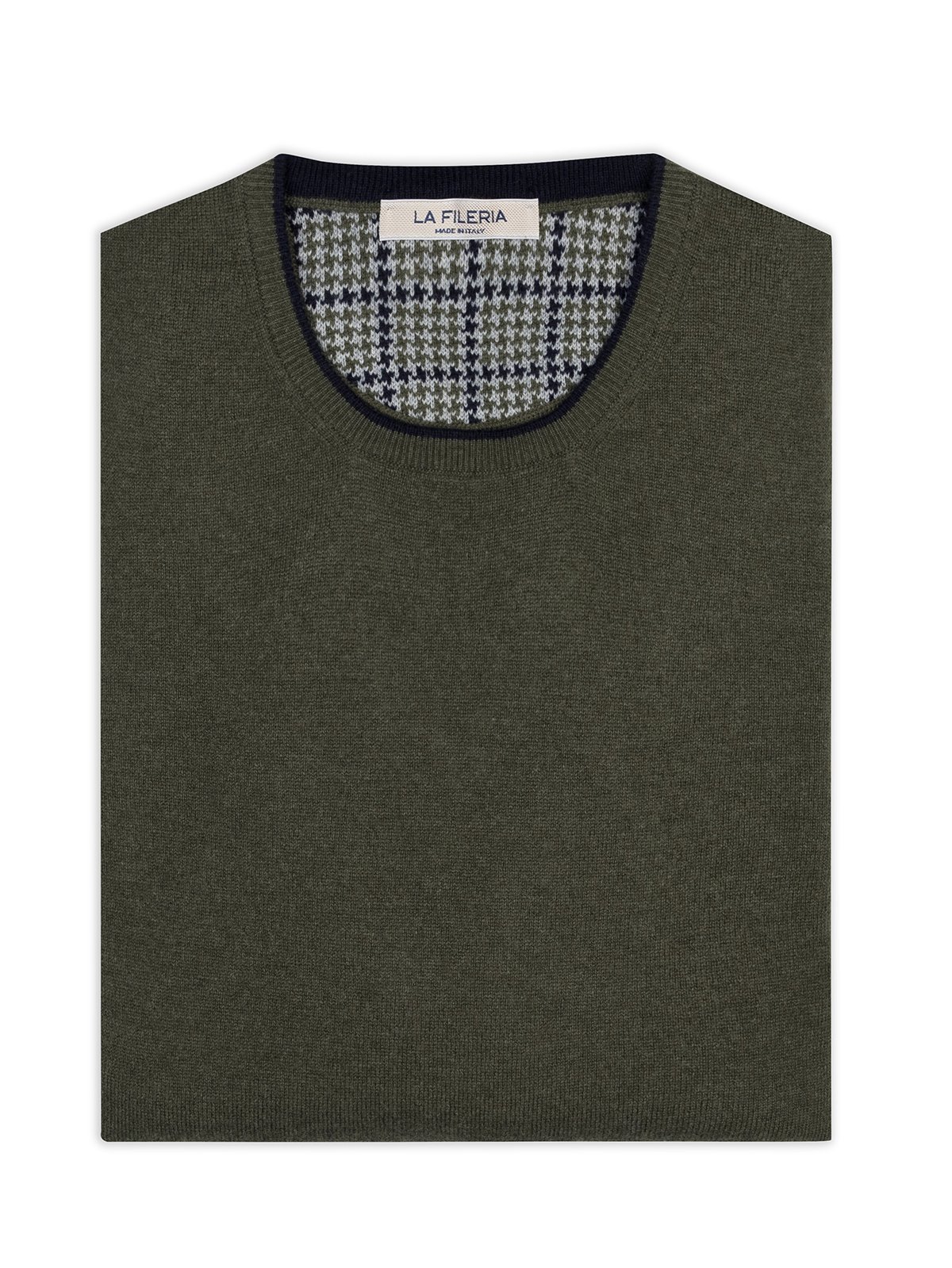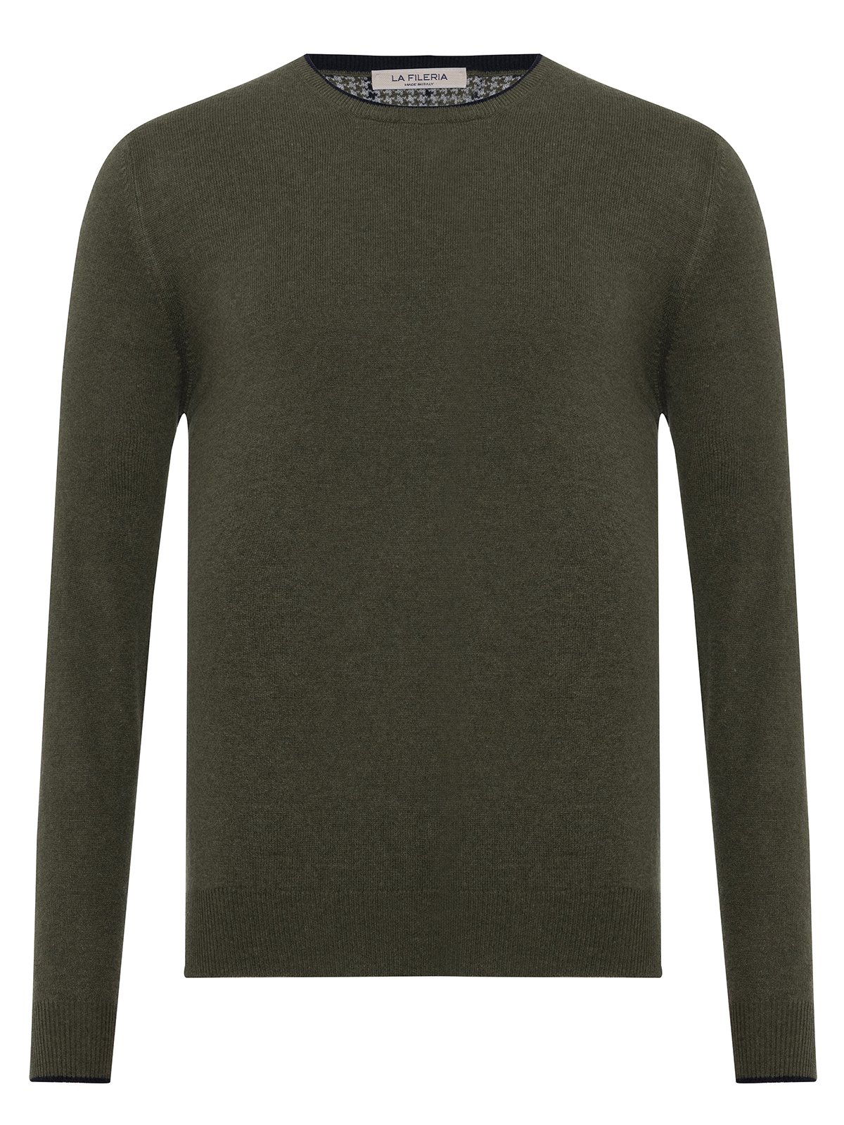 La Fileria Olive Yeşil Bisiklet Yaka Peçli Yün Kaşmir Triko