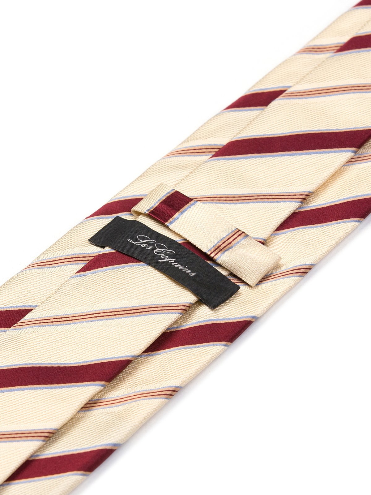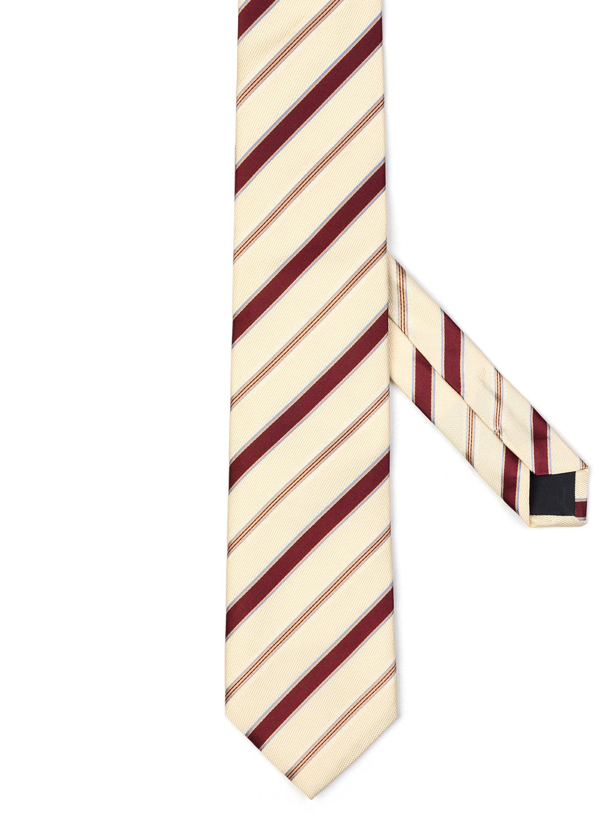 Les Copains Bej Bordo İnce Çizgili İtalyan Kravat