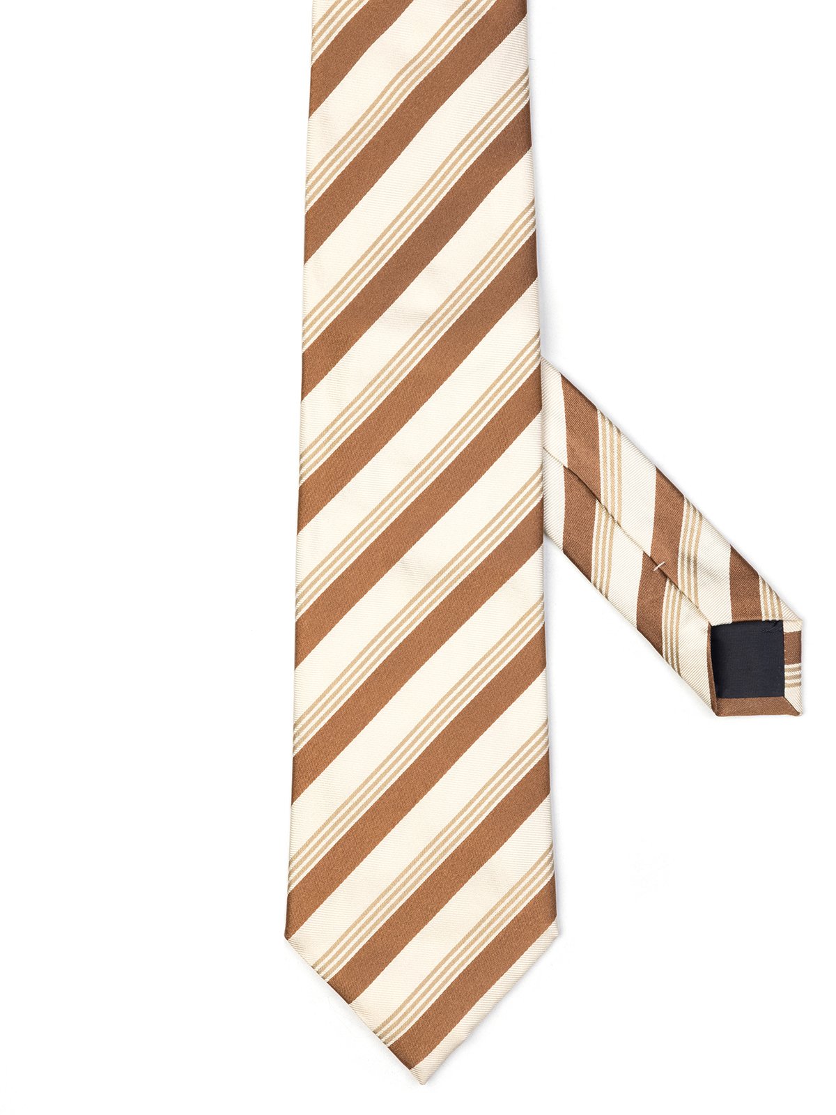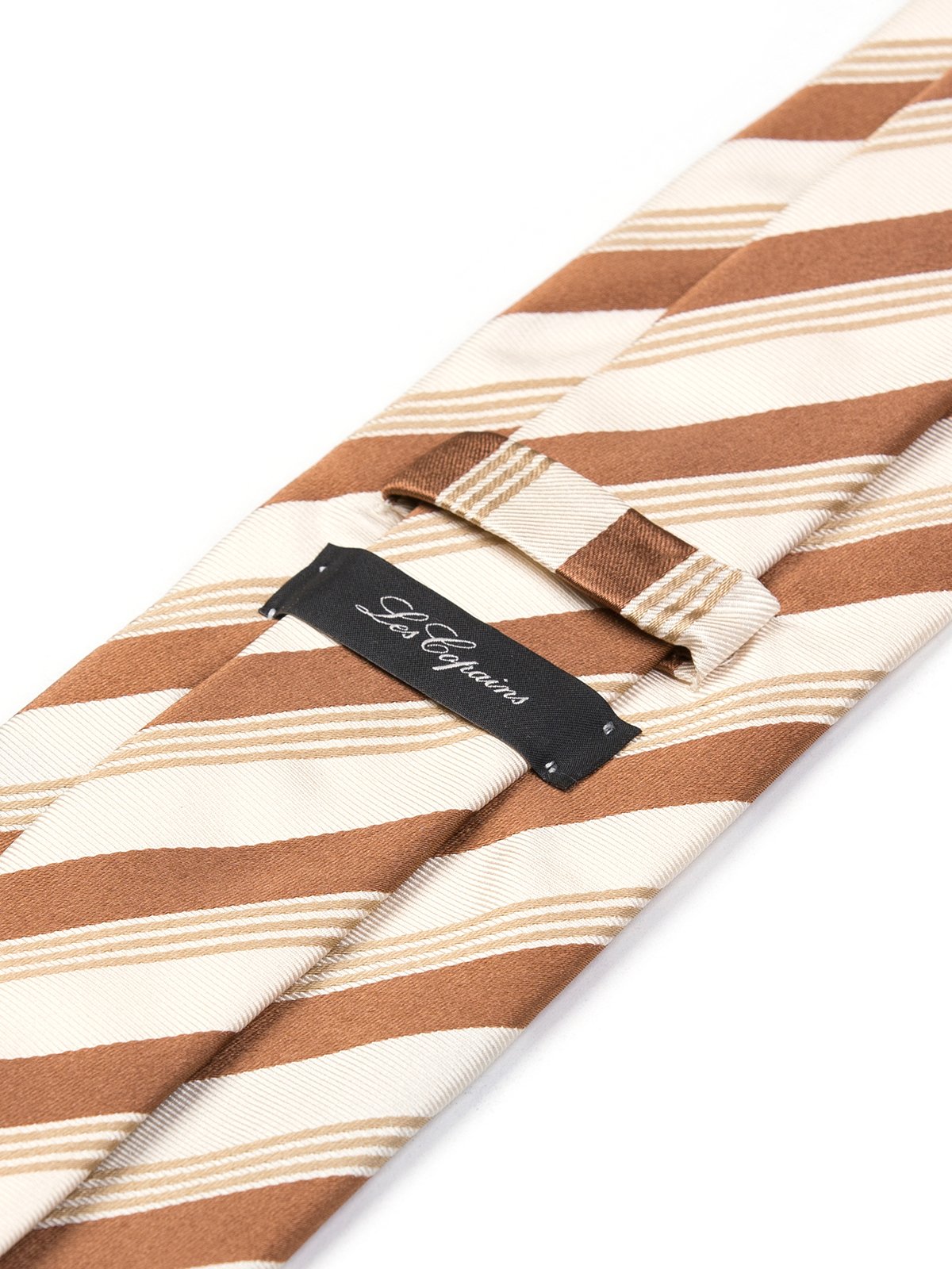 Les Copains Kahverengi Ekru İnce Çizgili İtalyan Kravat