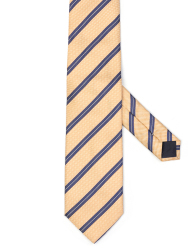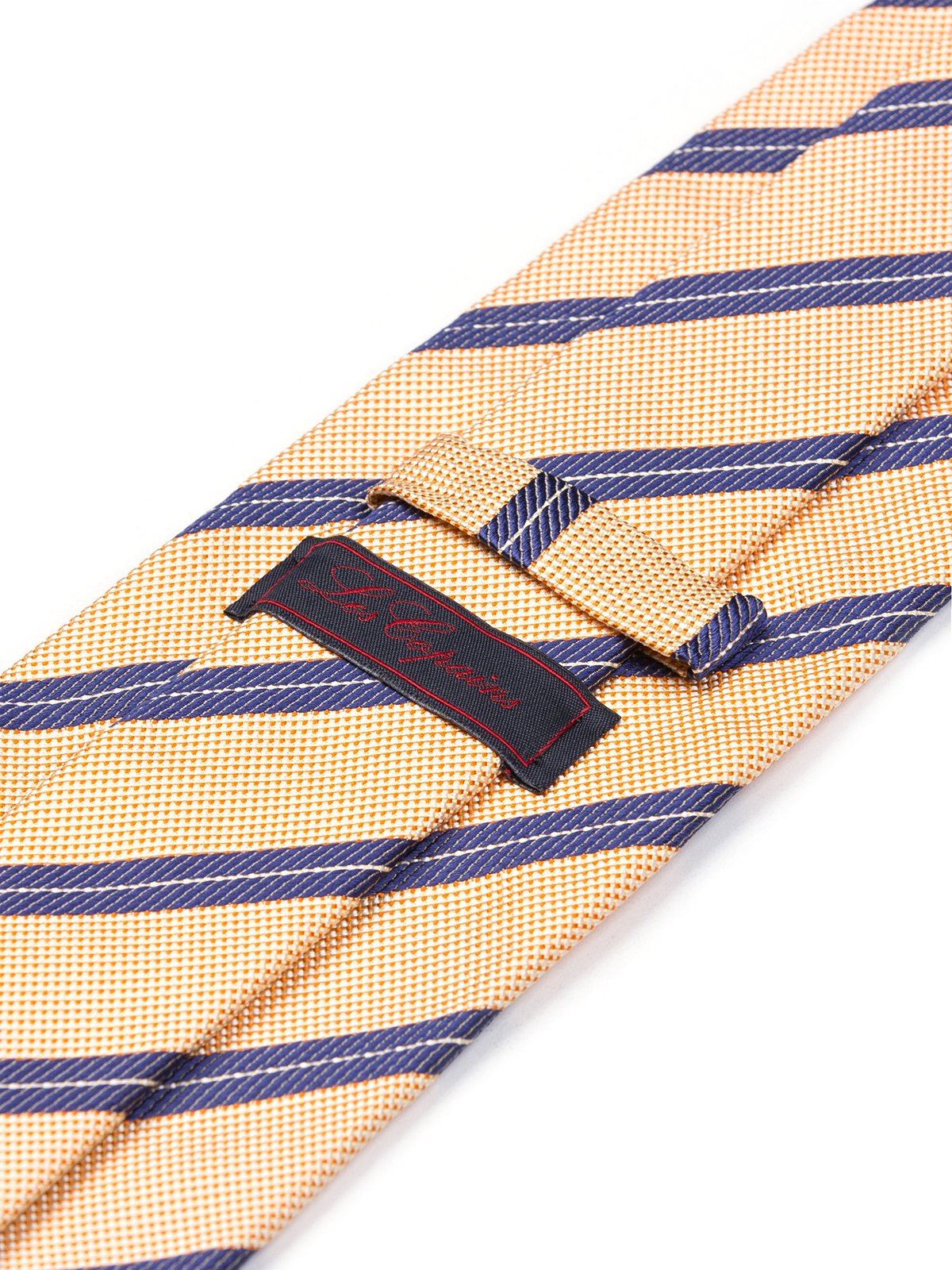 Les Copains Turuncu Bej Lacivert İnce Çizgili Dokulu İtalyan Kravat