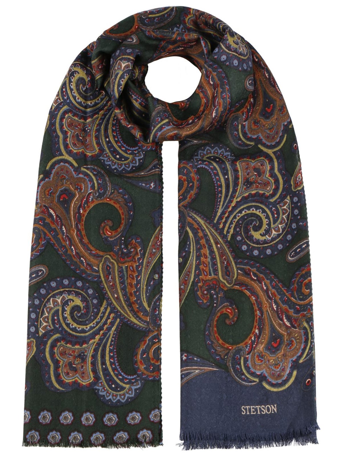 Stetson Yeşil Yün Şal Desenli Kaşkol