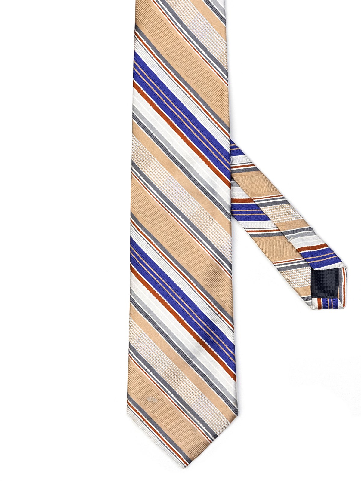 Cerruti Kahverengi,Beyaz,Mavi Çizgili Jakarlı İpek Kravat