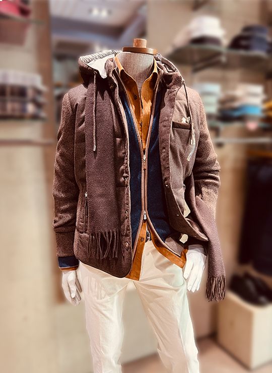 La Fileria Kahverengi Dolgulu Yün Kapişonlu Erkek Ceket Triko